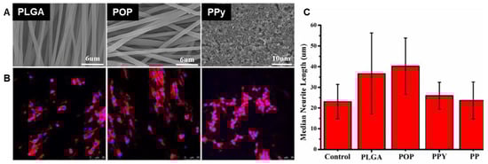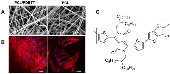 - Massoumi, B.; Hatamzadeh, M.; Firouzi, N.; Jaymand, M. Electrically conductive nanofibrous scaffold composed of poly(ethylene glycol)-modified polypyrrole and poly(epsilon-caprolactone) for tissue engineering applications. Mater. Sci. Eng. C Mater. Biol. Appl. 2019, 98, 300–310. [Google Scholar] [CrossRef]