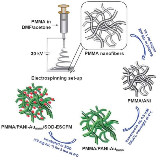 - Halicka, K.; Cabaj, J. Electrospun Nanofibers for Sensing and Biosensing Applications-A Review. Int. J. Mol. Sci. 2021, 22, 6357. [Google Scholar] [CrossRef]