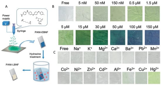 - Si, Y.; Wang, X.; Li, Y.; Chen, K.; Wang, J.; Yu, J.; Wang, H.; Ding, B. Optimized colorimetric sensor strip for mercury(ii) assay using hierarchical nanostructured conjugated polymers. J. Mater. Chem. A 2014, 2, 645–652. [Google Scholar] [CrossRef]