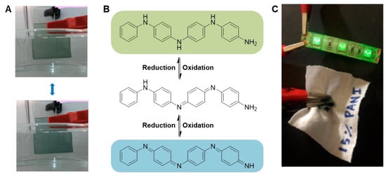 - Chen, C.-Y.; Huang, S.Y.; Wan, H.-Y.; Chen, Y.-T.; Yu, S.-K.; Wu, H.-C.; Yang, T.-I. Electrospun Hydrophobic Polyaniline/Silk Fibroin Electrochromic Nanofibers with Low Electrical Resistance. Polymers 2020, 12, 2102. [Google Scholar] [CrossRef] [PubMed]