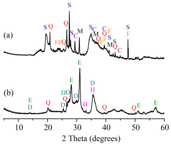 XRD analysis of ceramic bodies fired at 1060 °C: (a) CS, (b) CD20.