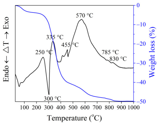 Thermal analysis of OCW up to 1000 °C.
