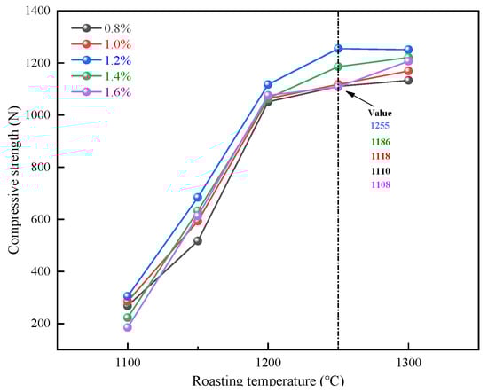 3.2.1. Influence of Roasting Temperature on Compressive Strength of Pellets