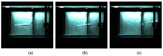 Experimental results for the launch speed of 56 m/s: (a) before penetration; (b) penetrating; (c) after penetration.