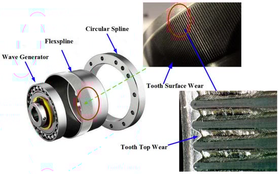 - Li, J.Y.; Wang, J.X.; Zhou, G.W. Failure mechanism of harmonic drivers for space. J. Tribol. 2013, 33, 44–48. [Google Scholar]