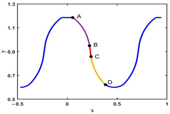 The flexspline double-arc tooth profile is composed of two eccentric circles and a tangent line. The tooth profile structure and the relationship between parameters are shown in Figure 2. AB and CD are two circular arcs, and BC is the common tangent of the two arcs. The parameter equations for each part of flexspline are as follows: