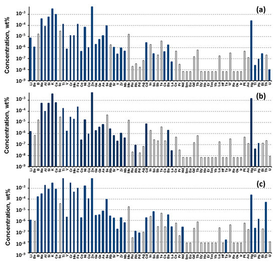 The ICP-MS results of Mg purified by vacuum distillation: (a) upper fraction called Mg-S-Top; (b) bottom fraction called Mg-S-Bot; (c) cube fraction called Mg-S-Cube (Table S1).