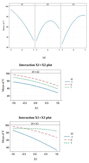 | Contact time (X3) | 20 min | −1 | 70 min | 0 | 120 min | 1 |