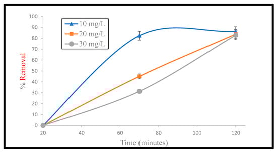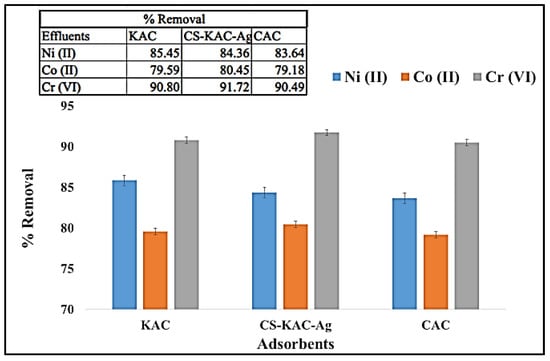 | No. | Adsorbent | Concentration (mg L−1) | pH | Adsorbent Dosage (g/L) | Removal Efficiency % | Literature |