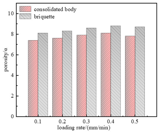 Porosity of the briquette and consolidated body under different loading rates.