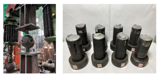 - Ding, B.; Zhao, Y.; Huang, Z.; Cai, L.; Wang, N. Tensile bearing capacity for bolted spherical joints with different screwing depths of high-strength bolts. Eng. Struct. 2020, 225, 111255. [Google Scholar] [CrossRef]