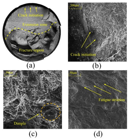 - The fatigue fracture analyzed via scanning electron microscopy (SEM) presented typical fatigue damage characteristics, showing the fatigue source, the propagation zone, and the transient fracture zone, revealing the failure mechanism of high-strength bolts under variable-amplitude fatigue.