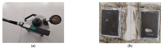 Before gluing, each sample was dried for 10 h at 105 °C to remove any moisture from the concrete surface. The presence of even a small amount of water on the surface of the tested concrete could effectively interfere with effective adhesion to its surface.
