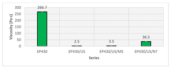 Results of viscosity measurements for the modified series when the sonicator was turned off.