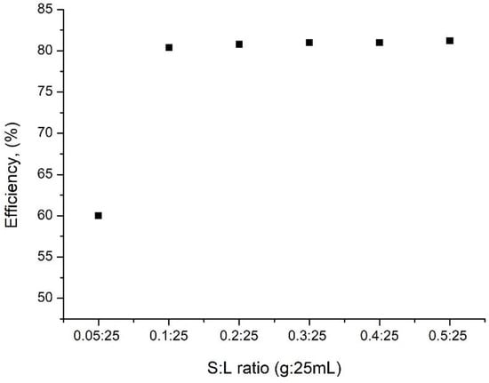 The effect of solid:liquid (S:L) ratio on the efficiency of the vanadium recovery process is shown in Figure 5.