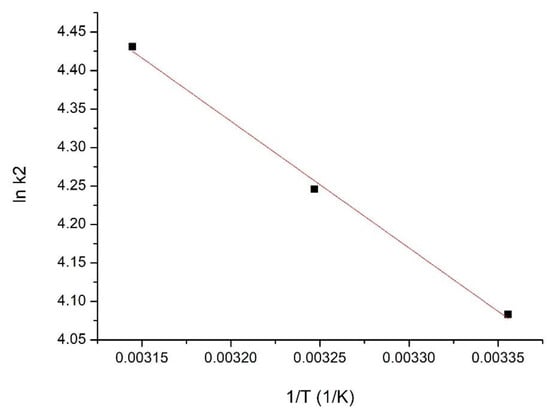 The activation energy Ea was calculated using the Arrhenius equation and the speed constant from the pseudo- second order kinetic model k2 is represented graphically by ln k2 = f (1/T).