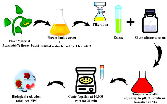 - Yousaf, H.; Mehmood, A.; Ahmad, K.S.; Raffi, M. Green Synthesis of Silver Nanoparticles and Their Applications as an Alternative Antibacterial and Antioxidant Agents. Mater. Sci. Eng. C 2020, 112, 110901. [Google Scholar] [CrossRef]