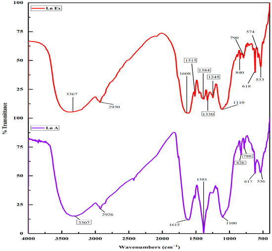 2.4. Characterizations of Biosynthesized LnFb-AgNPs