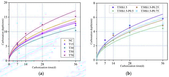 Exposing concrete structures to a natural or harsh environment for a long time strongly affects their safety characteristics and usability; therefore, the durability of building structures is a very important parameter. Concrete carbonation is a common form of concrete deterioration. Although carbonation produces no adverse effects on concrete strength and may even increase its value, it ultimately causes the shrinkage and cracking of the concrete matrix, reduces concrete ductility, and leads to the destruction of the concrete structure and a reduction in its service life [16,17].