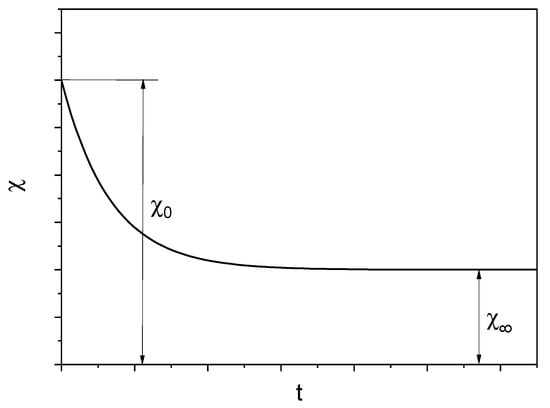 Disaccomodation curve of magnetic susceptibility χ from time t, χ0—magnetic susceptibility at time t = 0, χ∞—magnetic susceptibility for t → ∞ [].