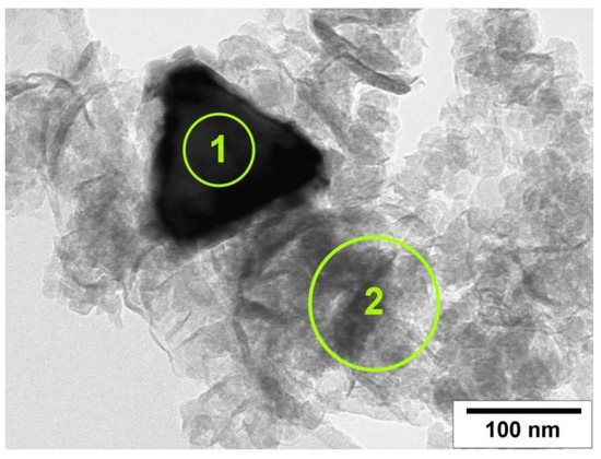 The morphology of the carbon product was explored by transmission electron microscopy (TEM) using a Hitachi HT7700 TEM (Hitachi High-Technologies Corp., Tokyo, Japan) working at an acceleration voltage of 100 kV and equipped with a W source.