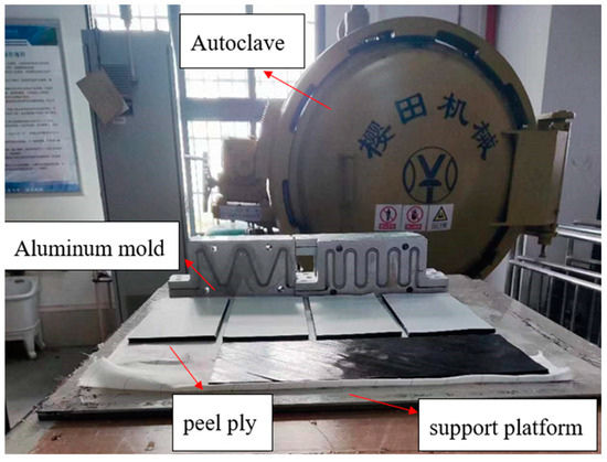 The mold surface is covered with release cloth and release grease for subsequent release of specimens. Next, the mold is placed on the autoclave support platform and a breathable felt and vacuum bag are laid on the mold, and the vacuum bag is connected to the support platform using sealant for sealing. Next, push the support platform into the autoclave for high-temperature and high-pressure curing molding.