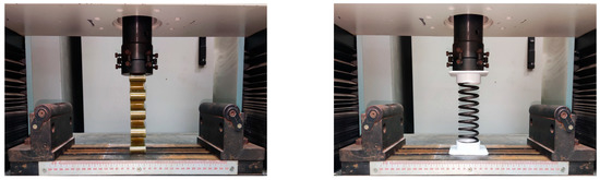 This paper uses electronic universal testing machine to experiment the stiffness performance of GFRP wave springs and metal helical spring, and the installation is shown in Figure 7.