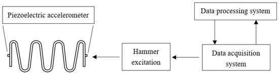 The block diagram of the frequency response characteristics experiment process is shown in Figure 8. In the free state, the force hammer 8206-002 is used to generate the excitation signal for the specimen. Two B&K 4507Bx acceleration sensors acquire the input and output acceleration response signals of GFRP wave spring and input them into the B&K data acquisition system. The computer software B&K connect completes data acquisition and analysis.
