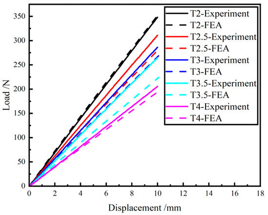 The load-displacement curves obtained by simulation are compared with the curves that obtained from experiment, as shown in Figure 10 and Table 4.