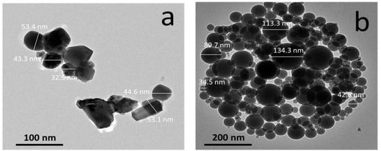 Figure 3 represents TEM images of the Y element and the ceramic reinforcement of the silica fume waste. The mean particle size of the Y element was about 45.4 nm, and the particles tended to be hexagonal with low agglomeration. In contrast, the silica fume particles had a spherical shape and their sizes ranged from 34.5 to 134.3 nm.
