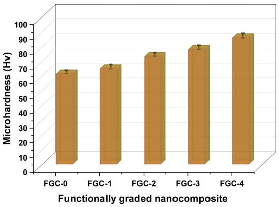 Microhardness of all FGCs sintered at 560 °C for 1 h in argon.