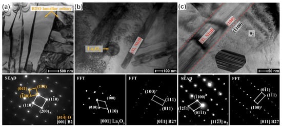 - Zhang, N.B.; Han, X.L.; Sun, D.L.; Liu, S.A.; Li, H.; Yang, W.S.; Wu, G.H. Microstructure Evolution and Mechanical Properties of LaB6-Modified Ti2AlNb Alloy Fabricated by Blended Elemental Powder Metallurgy. Powder Technol. 2020, 369, 334–344. [Google Scholar] [CrossRef]