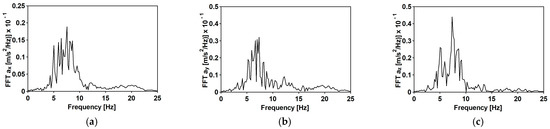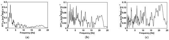 Fourier spectra of the second mining-induced shock: (a) horizontal direction WE; (b) horizontal direction NS; (c) vertical direction Z.