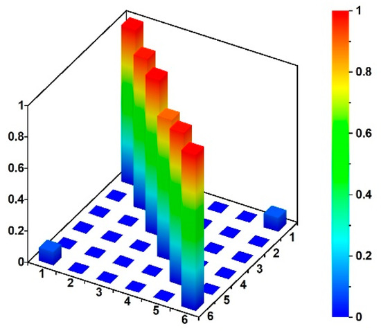 The MAC proved a high degree of consistency between numerical and experimental evaluations: the observed boundaries of the MAC values (Figure 19) are greater than 0.80 on the diagonal and less than 0.20 out of the MAC matrix’s diagonal.