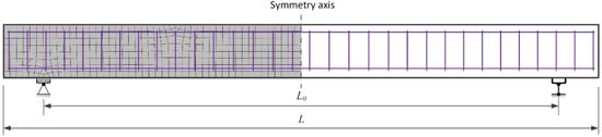 A typical finite element model and support conditions of reinforced LWAC flexural member. L0 is the span; L is the total length.