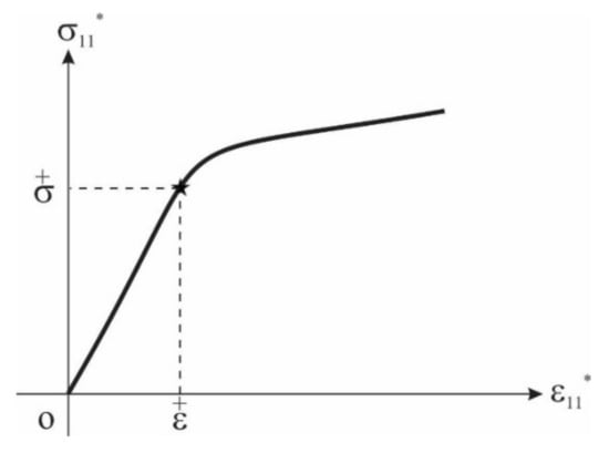If the data for nonlinear deformation of a structural element with are not available, then the function can be approximately predicted employing the parabolic or elliptic function indicated, assuming that the parameters do not depend on and in relations (18) or in relations (22) and considering the fact that the value of is typically rather small. Then, will affect mainly the elastic modulus .