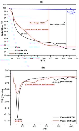 TG (a) and DTG (b) curves of activated glass waste.