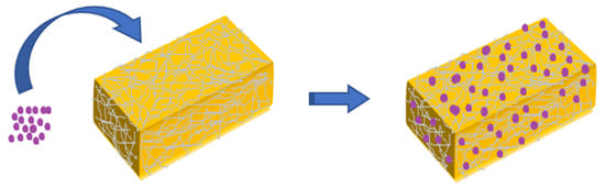 Taking into account the aforementioned aspects and the fact that bacterial cellulose is a 3D-structured network, BC may function as a matrix to ‘trap’ other potential compounds []. Thus, microbial cellulose composites came to life, aiming to improve and eliminate some of the components’ disadvantages or to adapt a range of properties, depending on the desired final product []. The direct addition of various materials applied to BC results in a ‘combination product’ called BC composite, as illustrated in Figure 3.