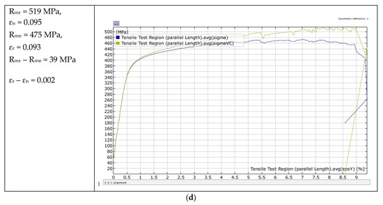 The differences in the values of ultimate tensile stresses Rmr – Rmn determined for the materials tested (the last two columns in Table 6), did not differ significantly with regard to the method of determining these true characteristics. Therefore, in the absence of the expensive Aramis Adjustable instrumentation intended for the deformation and displacement measurements using the DIC technique, the analytical method can be an effective method to use.