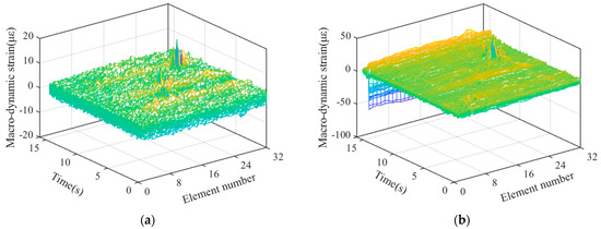 - Hong, W.; Wu, Z.; Yang, C.; Wan, C.; Wu, G. Investigation on the damage identification of bridges using distributed long-gauge dynamic macrostrain response under ambient excitation. J. Intell. Mater Syst. Struct. 2012, 23, 85–103. [Google Scholar] [CrossRef]