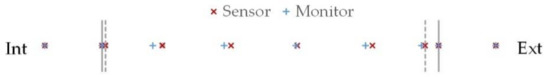 Then, the heat and moisture flux variation versus time are studied at the interior and exterior surfaces of the wall. Finally, the heat storage/release are calculated on the interior and exterior surfaces of the wall by integrating the incoming/outgoing heat fluxes over time. The total heat storage/release are the sum of the values on both surfaces (11). In the same way, the moisture storage and release are calculated on each surface and the total is the sum of the values on both surfaces (12).