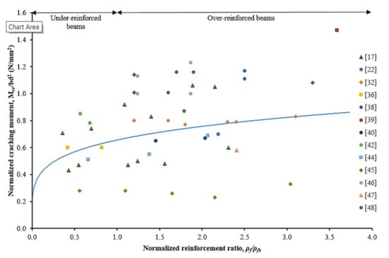 Normalized cracking moment against normalized reinforcement ratio [,,,,,,,,,,,,].