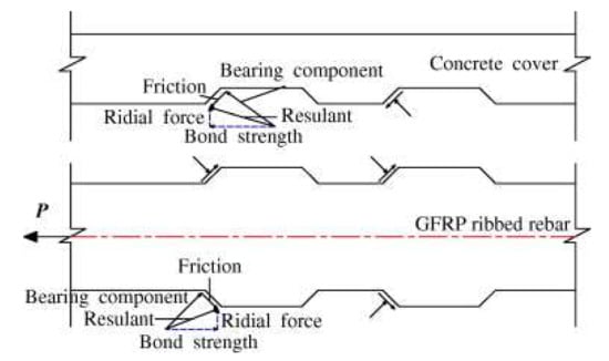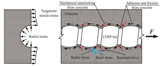 Bond stress transferring mechanisms between deformed CFRP bar and concrete (Reprinted with permission from ref. [], 2022, Elsevier).