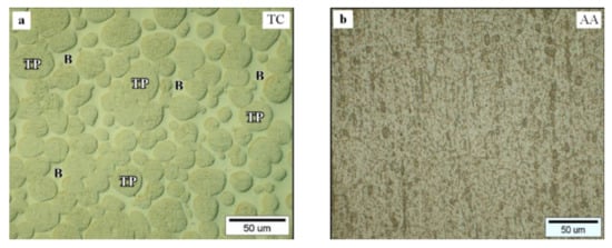 Figure 1a shows the tungsten spherical particles (TP) surrounded by a solid solution matrix (Ni-Fe) as the binder phases (B). The microstructure of aluminum alloy (AA) consists of many undissolved second-phase intermetallic particles (see Figure 1b).