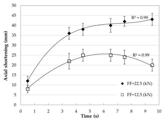 It can be seen that as the friction force and welding time increased, the axial shortening of the aluminum samples increased.