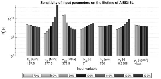Sensitivity of variations in the input parameters on the lifetime of AISI 316L steel.