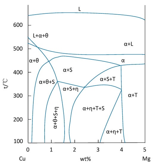 - Rokhlin, L.L.; Dobatkina, T.V.; Bochvar, N.R. Investigation of phase equilibria in alloys of the Al-Zn-Mg-Cu-Zr-Sc system. J. Alloys Compd. 2004, 367, 10–16. [Google Scholar] [CrossRef]