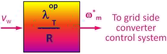 The criteria of rotational speed control classify the grid connected with wind energy conversion devices into fixed- and variable- speed systems. Here, tip speed ratio is a required concept to explain the classification effectively. In a wind turbine, the tip speed ratio is defined as the ratio of tangential velocity of the blade-tip to that of the wind driving speed of the turbine. When the turbine of radius (rT) is rotating at an angular velocity (ωT rad/s) and the velocity of wind (νw) acting upon it, the tip speed ratio (λ) can be expressed by Equation (1) [28], which identifies the relation between the λ and the design parameters of the turbine.