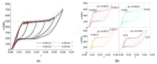 The tested SMA wire with a diameter of 1.0 mm diameter was obtained from Gao’an SMA Material Co., Ltd. According to data offered by the manufacturer, the chemical composition of the SMA wire in terms of weight was close to Ni-55.96%, Ti-43.9835%, H-0.0005%, Cr-0.0070%, Co-0.003%, C-0.005%, Fe-0.006%, Cu-0.006%, and others-0.029%. Tests on the mechanical properties of the SMA wire at different loading rates and initial strains under cyclic loading were carried out, and the hysteresis curves are shown in Figure 4 [].
