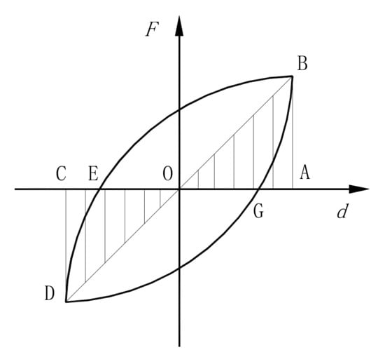 where SEBG and SDEG represent the areas of the closed geometrical figures EBG and DEG, which are enclosed by the vertical axial force and horizontal displacement of the coordinates, and SOBA and SODC represent the areas of the triangles OBA and ODC in Figure 11.